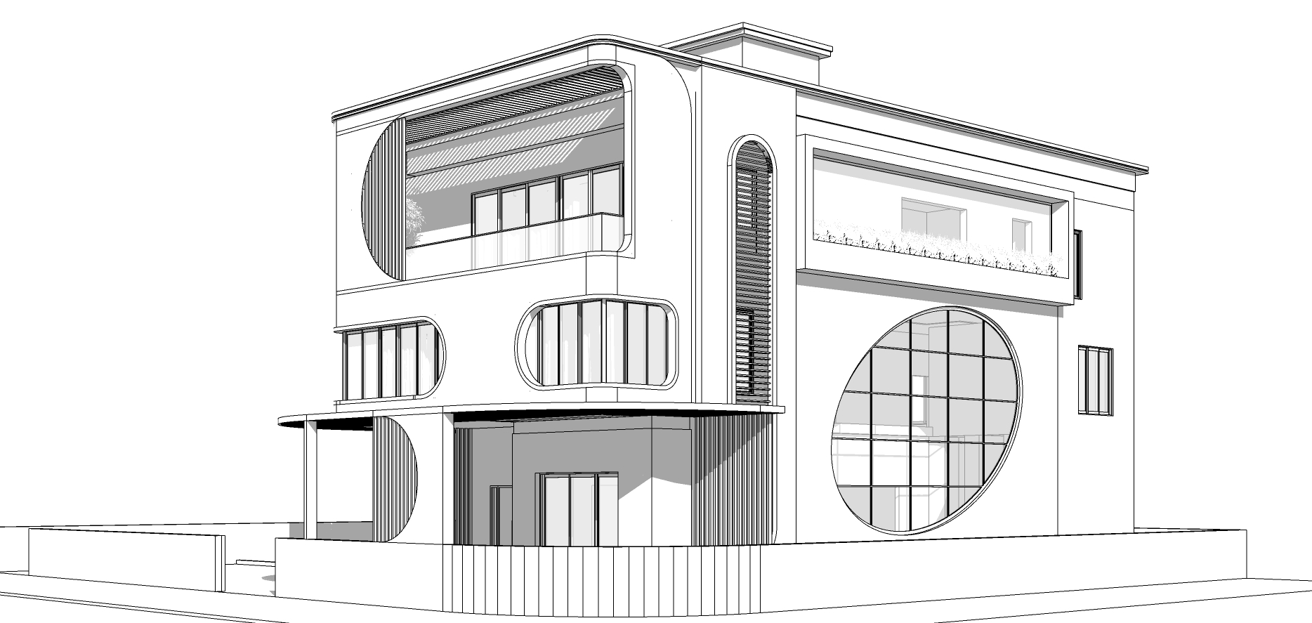 ‘Vrindavan’ is an 8,000 sq.ft. modern farmhouse set in the scenic hills of Karjat, designed as a luxurious yet peaceful retreat. The architecture features a bold blend of circular and rectangular forms, with open, flowing volumes that frame stunning views. Spread across three levels, the home is tailored for large family gatherings, with multiple living areas and intimate nooks that offer quiet moments of escape.