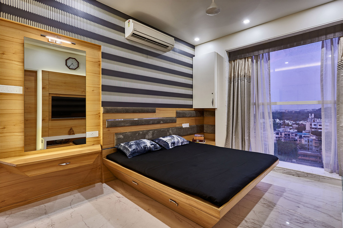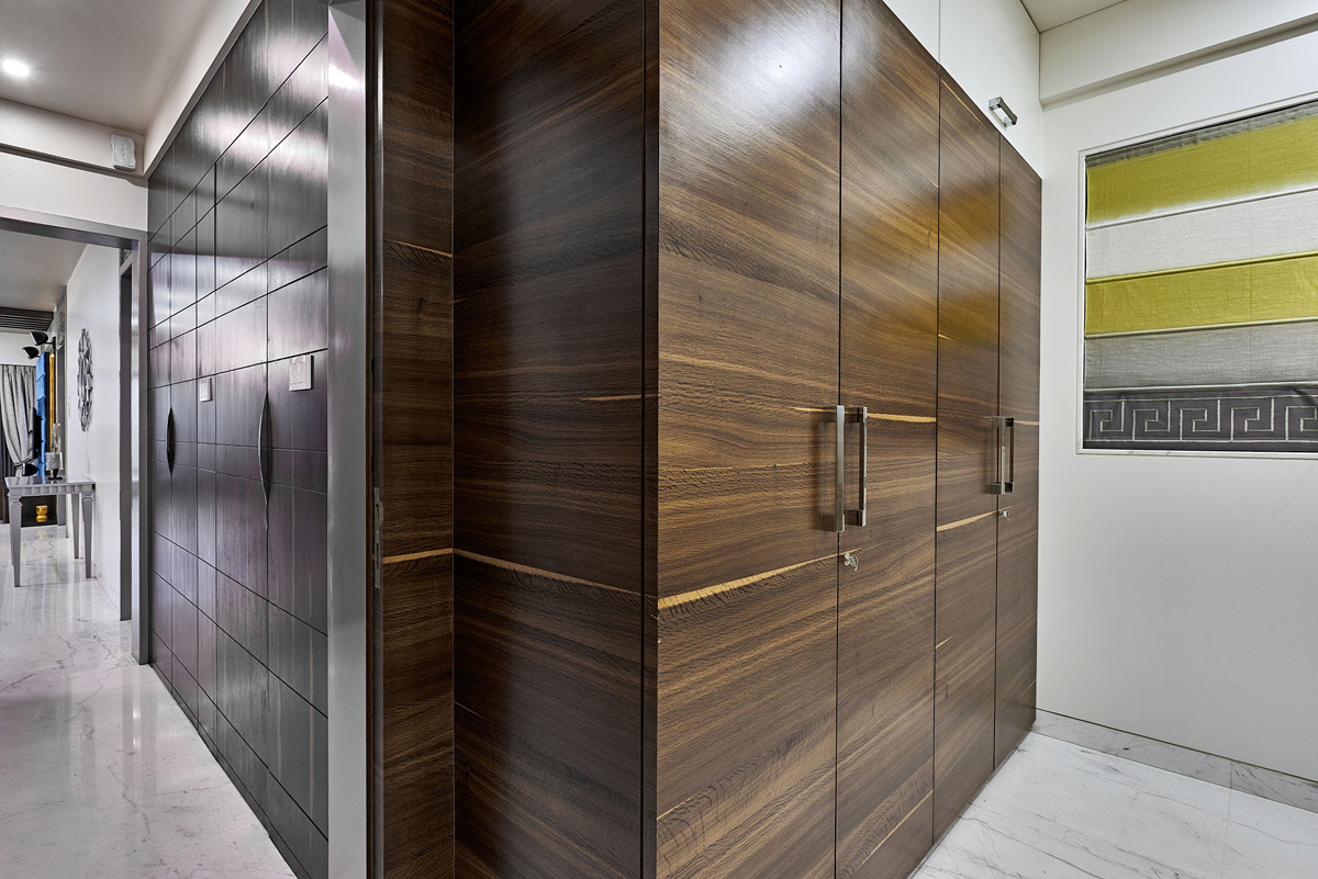 This swanky apartment located in Aundh bears a classy, modern touch. A combination of grey and white Italian marble, suede, velvet and rich veneers gives it a luxurious feel. While retaining tradition, the elements use modern techniques of construction such as use of laser cut S.S jaalis and mirror work. The fabrics, wallpapers, furniture and flooring pattern reflect a Moroccan style and the blown glass light fixtures enhance the beauty of this residence.