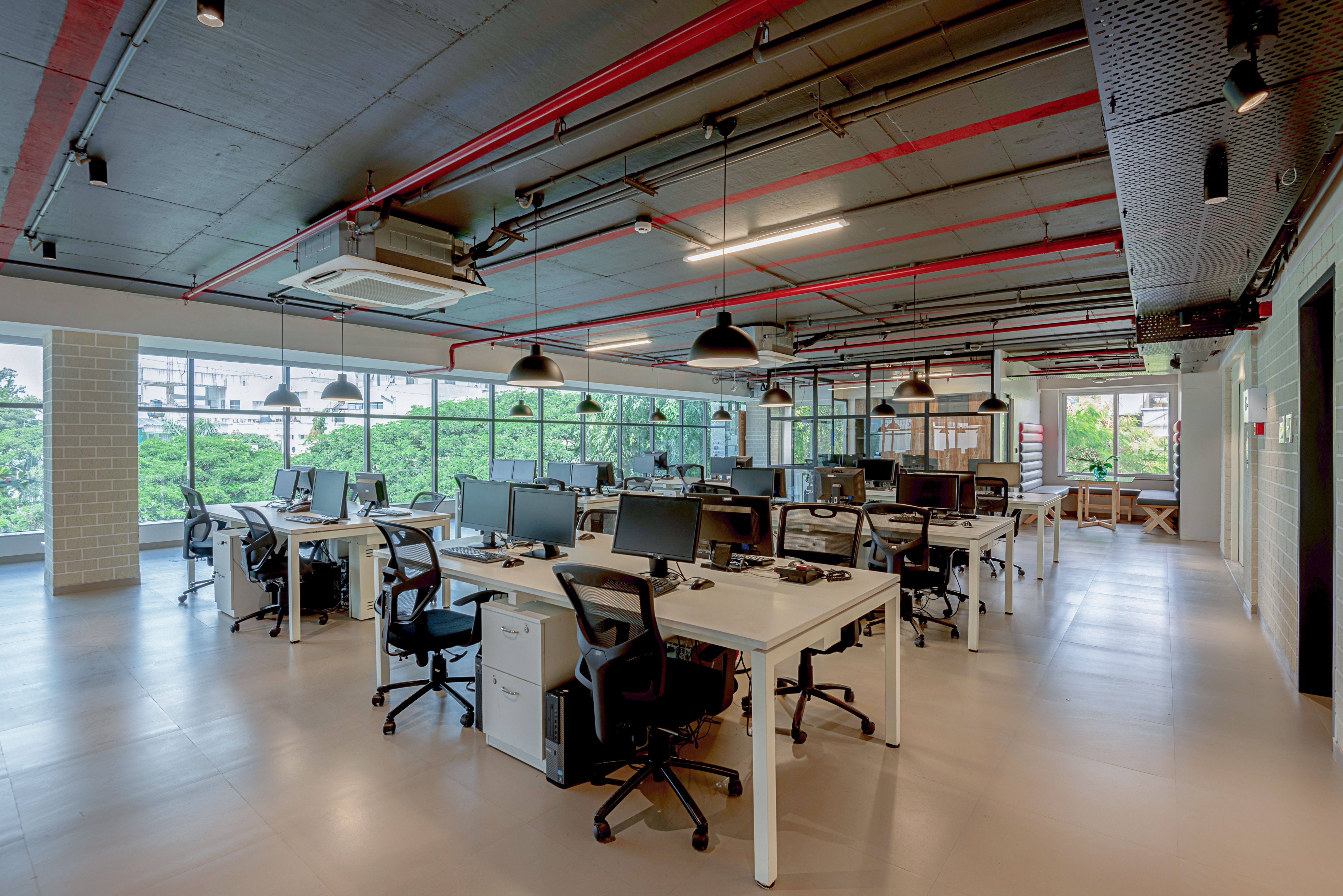 The main concept for Zentest was to have a fusion between an industrial and Zen look. So, though the main areas of the office were designed in an industrial aesthetic, a Zen feel was brought in through the use of wooden accents and plants. The logo colors formed a major part of the palette, referencing the core values of the company throughout the design. The office functioned in an informal, open way, where all employees are treated the same regardless of their designation. We translated this into an open office concept, where every employee had the flexibility of interaction and movement. Breakout spaces were created to provide a breather for the software engineers in the midst of their busy schedules.